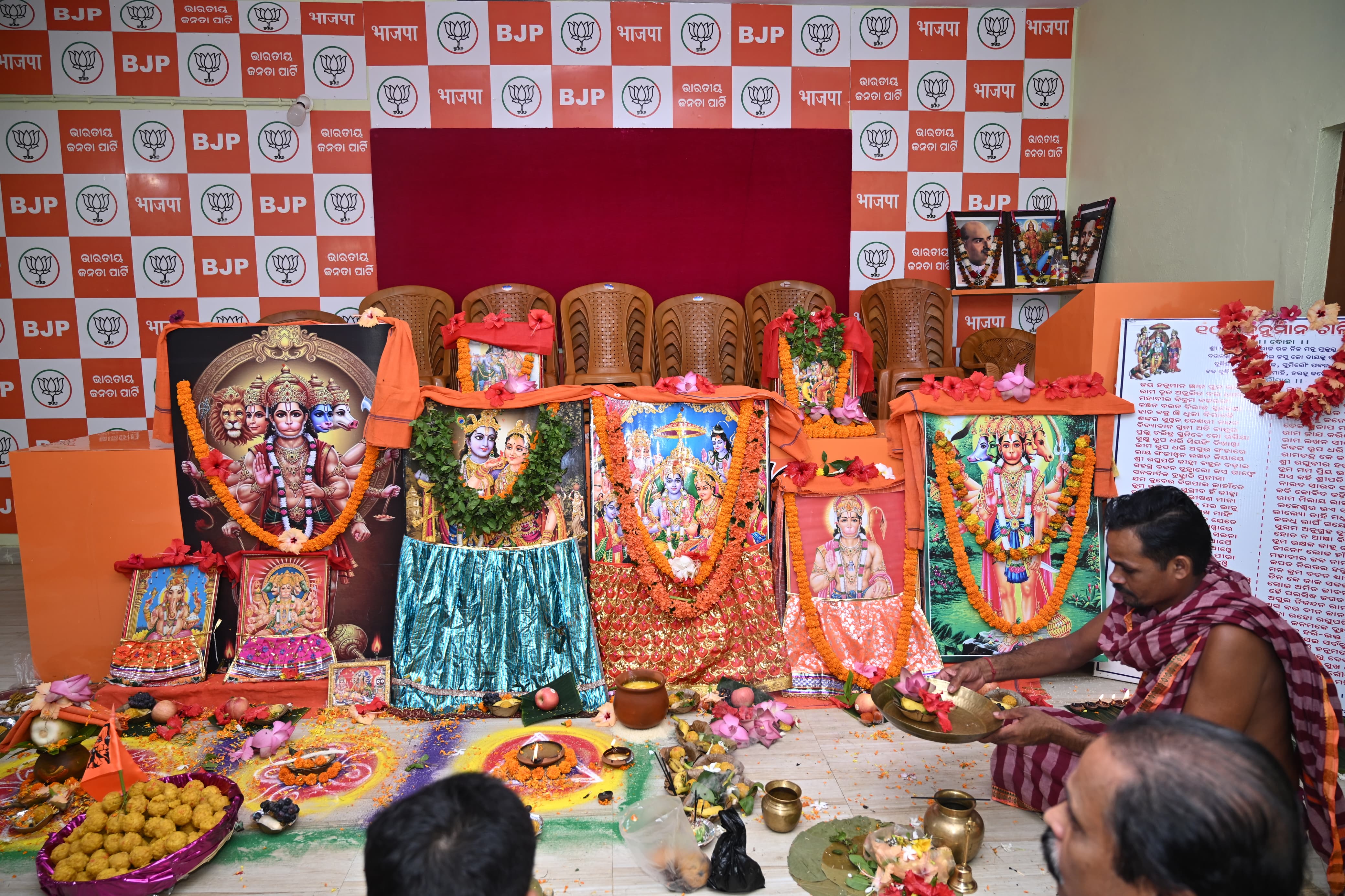 ଛତ୍ରପୁର ବିଜେପି କାର୍ଯ୍ୟାଳୟ ରେ ବିଶ୍ଵ ଶାନ୍ତି ପ୍ରତିଷ୍ଠା ପାଇଁ ୧୦୮ ହନୁମାନ ଚାଳିଶା ପାଠ