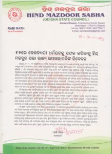 12ରେ ଦେଶବ୍ୟାପୀ ଧର୍ମଘଟକୁ ସଫଳ କରିବାକୁ ହିନ୍ଦ୍ ମଜଦୁର ସଭା ରାଜ୍ୟ ଉପସଭାପତିଙ୍କ ନିବେଦନ