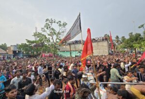 ବୁଗୁଡା : ତା ୧୪/୦୪/୨୬ : ବୁଗୁଡା ଏବଂ ଏହାର ଆଖପାଖ ଅଞ୍ଚଳରେ ଚାଲିଆସିଥିବା ଗଣପର୍ବ ଦଣ୍ଡଯାତ୍ରା ପବିତ୍ର ମେରୁ ସଂକ୍ରାନ୍ତିରେ ଉଦଯାପିତ ହୋଇଯାଇଥିଲା ବେଳେ ଉତ୍ସାହର ସହ ମେରୁ ପର୍ବ ପାଳିତ ହୋଇଯାଇଛି । ଚଳିତ ବର୍ଷ ପ୍ରବଳ ଜନ ସମାଗମ ସହ ଆନନ୍ଦ ଓ ଉଲ୍ଲାସରେ ବୁଗୁଡ଼ା ସମେତ ତାଳସାକର , ଡାକରାବାଡି , ଚିରିକିପଡା,ମରାଇପଲ୍ଲୀ, ଗୋଲିଆ, ଭାମଶ୍ୟାଳି, ପଙ୍କଳବାଡି,ଆଶ୍ରମ କରଡ଼ାବାଡ଼ି, ପୋଚାଲୁଣ୍ଡି, ବକ୍ସିପଲ୍ଲୀ , ବଣପଲ୍ଲୀ,ପାଣିକେଶର,ଭାବସର, ଚିଲିଖମା ଓ କାନନକୁଟୀର ଆଦି ଗ୍ରାମରେ ସଂକ୍ରାନ୍ତି ମେରୁ ପର୍ବ ଅନୁଷ୍ଠିତ ହୋଇଯାଇଛି । ଉକ୍ତ ପର୍ବ ପାଳନ ଅବସରରେ ଦଣ୍ଡକାଳୀ ମନ୍ଦିର ଗୁଡିକ ନିକଟରେ ଯଥା ରୀତିନୀତି ପ୍ରକାରେ ଧୂଳିଦଣ୍ଡ ,ଜଳଦଣ୍ଡ ଓ ଅଗ୍ନିଦଣ୍ଡ ପରେ ଦଣ୍ଡଭୁକ୍ତାମାନେ ଗ୍ରାମ୍ୟ ପରିକ୍ରମା କରିଥିଲେ । ତା’ପରେ ମେରୁ ମଣ୍ଡପଠାରେ ହୋମକୁଣ୍ଡ ପ୍ରଜ୍ବଳନ କରାଯାଇ ତାହା ଉପରେ ପାଟ ଦଣ୍ଡୁଆଙ୍କୁ ଝୁଲାଇ ଝୁଣାମାଡ କରାଯାଇଥିଲା । ଏହି ଦୃଶ୍ୟ ଦେଖିବା ସହ ଶ୍ରଦ୍ଧାଳୁଗଣ ଭକ୍ତିପୂର୍ଣ୍ଣ ଭାବେ ରୁଦ୍ର ଏବଂ କାଳୀଙ୍କୁ ପୂଜାର୍ଚ୍ଚନା କରିଥିଲେ। ଏ ଅବସରରେ ବୁଗୁଡା ସହରାଞ୍ଚଳ ଓ ଗ୍ରାମାଞ୍ଚଳର ବିଭିନ୍ନ ସ୍ଥାନରେ ସ୍ଵେଚ୍ଛାସେବୀଙ୍କ ଦ୍ବାରା ପଣା ବଣ୍ଟନ କରାଯାଉଥିବା ଦେଖିବାକୁ ମିଳିଥିଲା ।