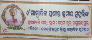 କଥାରେ ଅଛି ବିପଦରେ ଆପଦରେ ଅଥବା ସଙ୍କଟ ସମୟରେ ଯିଏ ସହାୟକ ହୋଇଥାଏ ସେ ହିଁ ପ୍ରକୃତ ବନ୍ଧୁ । ଏକଥା ପ୍ରମାଣ କରି ଦେଖେଇ ଦେଇଛି , ଜଗତସିଂହପୁର ଜିଲ୍ଲା ସାମ୍ବାଦିକ ୟୁନିଅନ । ରଘୁନାଥପୁର ବ୍ଲକର ଦିବଙ୍ଗତ ସାମ୍ବାଦିକ ସ୍ବର୍ଗତଃ ପ୍ରଶାନ୍ତ ମୁଦୁଲିଙ୍କର ଅକାଳ ବିୟୋଗରେ ଜଗତସିଂହପୁର ଜିଲ୍ଲାର ସମସ୍ତ ସାମ୍ବାଦିକ ମର୍ମାହତ ଓ ଶୋକରହିତ ହୋଇ ଜଣେ ଲଢୁଆ ବନ୍ଧୁଙ୍କୁ ହରେଇବାର ଅଭାବ ଅନୁଭବ କରିଥିଲେ । ଜିଲ୍ଲା ୟୁନିଅନ ର ସେ ଥିଲେ ଆଗ ଧାଡ଼ିର କର୍ମୀ । ସେଇ ବନ୍ଧୁତ୍ୱ ର ଭଲପାଇବା ପାଇଁ ଜଗତସିଂହପୁର ଜିଲ୍ଲା ସାମ୍ବାଦିକ ଇଉନିୟନ ” ZUJ ” ଶାଖା ପକ୍ଷରୁ ସ୍ତାନୀୟ ରଘୁନାଥପୁର ପ୍ରେସ କ୍ଳବ କାର୍ଯ୍ୟାଳୟରେ ଦିବଂଗତ ପ୍ରଶାନ୍ତ ମୁଦୁଲିଙ୍କ ଉଦ୍ଦେଷ୍ୟରେ, ୟୁନିଅନ ର ଉପଦେଷ୍ଟା ଶ୍ରୀଯୁକ୍ତ ବିଜୟ କୁମାର ସ୍ୱାଇଁ ଙ୍କ ତତ୍ୱାବଧାନ ରେ ଏକ ଶୋକ ସଭାର ଆୟୋଜନ କରାଯାଇ ଦୁଇ ମିନିଟ ନିରବ ପ୍ରାର୍ଥନା କରା ଯାଇ ଥିଲା । ତାପରେ ସ୍ୱର୍ଗତଃ ମୁଦୁଲି ଙ୍କ ଶୋକ ସନ୍ତପ୍ତ ପରିବାରକୁ ସାମୁହିକ ଭାବେ ଭେଟି ସାନ୍ତ୍ୱନା ଦେବାକୁ ତାଙ୍କ ବାସଭବନରେ ପହଞ୍ଚିଥିଲେ । ପରିବାରକୁ ଧର୍ଯ୍ୟ ପ୍ରଦାନ କରିବା ସହିତ ଆନୁସଙ୍ଗିକ ଭାବେ ୧୭୦୦୦/ = ( ସତର ହଜାର ) ଟଙ୍କା ସାହାଯ୍ୟ ରାଶି ପ୍ରଦାନ କରାଗଲା !
