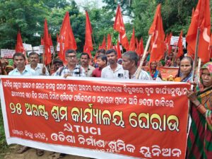 ନିର୍ମାଣ ଶ୍ରମିକମାନେ ପଞ୍ଜିକରଣ ଏବଂ ସାମାଜିକ ନିରାପତ୍ତା ପାଇଁ ଉଦ୍ଦିଷ୍ଟ ମୃତ୍ୟୁକାଳୀନ ସହାୟତା, ବିବାହ ସହାୟତା ଶିକ୍ଷା ବୃତ୍ତି ପାଇବା ପାଇଁ ଆବେଦନ କରି ବର୍ଷ ବର୍ଷ ଧରି ଶ୍ରମ କାର୍ଯ୍ୟାଳୟ ଧାଇଁ ନୟାନ୍ତ ହେଉଛନ୍ତି। ପଞ୍ଜିକରଣ ଦେୟ ୨୦ ଟଙ୍କା ଏବଂ ନବୀକରଣ ଦେୟ ୫୦ ଟଙ୍କା କିନ୍ତୁ ହଜାର ହଜାର ଟଙ୍କା ଶ୍ରମିକଙ୍କ ଶ୍ରାଦ୍ଦ ହେଉଛି। ଏହାର ସ୍ଥାୟୀ ପ୍ରତିକାର ପାଇଁ ଶ୍ରମ ବିଭାଗ ଶ୍ରମିକଙ୍କ ସ୍ବାର୍ଥ ରକ୍ଷା କରିବା ପାଇଁ କେନ୍ଦ୍ର ଓ ରାଜ୍ୟ ସରକାରଙ୍କ ଦ୍ୱାରା ନିର୍ଦ୍ଧାରିତ ସର୍ବନିମ୍ନ ମଜୁରୀ ସମସ୍ତ ଶ୍ରମିକଙ୍କୁ ପ୍ରଦାନ କରିବା, ସମାନ କାମକୁ ସମାନ ମଜୁରୀ, ଆବେଦନର ୩୦ଦିନ ମଧ୍ୟରେ ପଞ୍ଜିକରଣ, ଘୋଷିତ ସମସ୍ତ ସାମାଜିକ ନିରାପତ୍ତା, ସହାୟତା ରାଶି ଶ୍ରମିକଙ୍କ ସଂଚୟ ଖାତାକୁ ପ୍ରଦାନ କରିବା , ଶ୍ରମିକ ଗାଁ, ସାହି, ଲେବର ଷ୍ଟାଣ୍ଡ ଓ ବିଭିନ୍ନ ପ୍ରତିଷ୍ଠାନ ପରିଦର୍ଶନ କରି ଶ୍ରମିକମାନଙ୍କ ସହ ଆଲୋଚନା, ତଦାରଖ, କାର୍ଯ୍ୟାନୁଷ୍ଠାନ ଏବଂ ଶ୍ରମିକଙ୍କ ସମସ୍ୟାର ସମାଧାନ କରିବା, ଆବଶ୍ୟକୀୟ ସଂଖ୍ୟକ ଶ୍ରମ ଅଧିକାରୀ, କର୍ମଚାରୀ, ଡାଟା ଏଣ୍ଟ୍ରି ଅପରେଟର ନିଯୁକ୍ତ କରି ଶ୍ରମିକମାନଙ୍କୁ ତ୍ୱରିତ ନ୍ୟାୟ ପ୍ରଦାନ କରିବା, ୫୫ ବର୍ଷ ପରେ ସମସ୍ତ ନିର୍ମାଣ ଓ ଅସଂଗଠିତ ଶ୍ରମିକଙ୍କୁ ୧୦ ହଜାର ଟଙ୍କାର ଅବସରକାଳୀନ ପେନସନ, ପୂର୍ବରୁ ପଞ୍ଜିକୃତ ହୋଇଥବା ଶ୍ରମିକଙ୍କ ନବୀକରଣ ବର୍ତ୍ତମାନ କାମ କରୁଥବା ଶ୍ରମ ଜିଲ୍ଲାରେ ନବୀକରଣ ର ସୁବ୍ୟବସ୍ଥା ଆଦି ଦାବିରେ ଟିୟୁସିଆଇ ରାଜ୍ୟ ସଭାପତି ବିଚିତ୍ର ପାତ୍ର, ସି.ପି.ଆଇ(ଏମ୍ ଏଲ୍) ରେଡଷ୍ଟାର ଜିଲ୍ଲା ସଂପାଦକ ଶଙ୍କର ଇନକିଲାବ, ଓଡ଼ିଶା ନିର୍ମାଣ ଶ୍ରମିକ ୟୁନିଅନ ର ଜିଲ୍ଲା ସଭାନେତ୍ରୀ ପି.ପାର୍ବତୀ, ଜିଲ୍ଲା ସଂପାଦକ ରାମଚନ୍ଦ୍ର ବାଡତ୍ୟା, ମାମି ବେହେରା, ଅକ୍ଷୟ ସାହୁ, ଦିଲ୍ଲୀପ ପରିଡ଼ା, ଗୈତମ ନାହକ, ହାର ନାହକ, କାଳିଆ ନାହକ, ରାମ ମହାଙ୍କୁଡ, ନିରଞ୍ଜନ ନାହକ ଆଦିଙ୍କ ନେତୃତ୍ବରେ ଆସିକା, କବିସୂର୍ଯ୍ୟନଗର, ହିଞ୍ଜିଳିକାଟୁ ଓ ଧରାକୋଟ ବ୍ଳକର ଶହ ଶହ ଶ୍ରମିକ ସାମିଲ୍ ହୋଇଥିଲେ