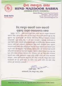 ହିନ୍ଦ୍ ମଜଦୁର ସଭାର ରାଜ୍ୟ ସଭାପତି କୃଷ୍ଣ ଚନ୍ଦ୍ର ପାତ୍ରଙ୍କ ପରଲୋକରେ ଶୋକ..