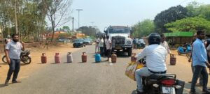 ଗ୍ୟାସ ସିଲିଣ୍ଡର ରଖି ଗ୍ରାମବାସୀଙ୍କ ରାସ୍ତା ଅବରୋଧ ,ପ୍ରଶାସନର ହସ୍ତକ୍ଷେପ ପରେ ହଟିଲା ଅବରୋଧ।