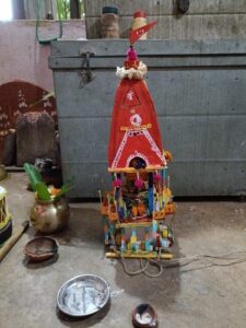 ଖୋର୍ଦ୍ଧା—(ପ୍ରିୟଙ୍କା ମହାପାତ୍ର)ଲୋକେଶ୍ୱରପୁର ରେ ରହୁଥିବା ଚତୁର୍ଥ ଶ୍ରେଣୀ ର ଛାତ୍ର ସାଇ ସମ୍ବିତ ସମ୍ବିତ ପଟ୍ଟନାୟକ କୁନି ନନ୍ଦିଘୋଷ ରଥ ନିର୍ମାଣ କରି ଚର୍ଚ୍ଚା ରେ l ଦୀର୍ଘ ପନ୍ଦର ଦିନ ଧରି ପରିଶ୍ରମ କରି ନିଜସ୍ୱ ଉଦ୍ୟମ ରେ କାଗଜ ଓ କାର୍ଡ ବୋର୍ଡ ରେ ନିର୍ମାଣ କରିଛନ୍ତି ଏହି କୁନି ରଥ l ପିଲାବେଳୁ ଈଶ୍ୱର ଙ୍କ ଉପରେ ବିଶେଷକରି ଜଗତର ନାଥ ମହାପ୍ରଭୁ ଜଗନ୍ନାଥ ଙ୍କ ଉପରେ ଅଗାଢ ବିଶ୍ୱାସ ରଖିଥିବା ସାଇ ସମ୍ବିତ ପଟ୍ଟନାୟକ ରଥଯାତ୍ରା ପୂର୍ବରୁ କୁନି ରଥ ନିର୍ମାଣ କରିବା ପାଇଁ ଘରେ ଥିବା ଅଦରକାରୀ କାଗଜ ଏବଂ କାର୍ଡବୋର୍ଡ କୁ ନେଇ ଏହି ରଥ ନିର୍ମାଣ କରିଛନ୍ତି ଏବଂ ସେହି ରଥରେ ବଳଭଦ୍ର, ସୁଭଦ୍ରା ଓ ମହାପ୍ରଭୁ ଜଗନ୍ନାଥ ଙ୍କୁ ରଥାରୂଢ କରି ନିଜେ ପୂଜା କରି ସାରିବା ପରେ ଦାଣ୍ଡ ରେ ଟାଣି, ଟାଣି ନେବା ସମୟରେ ଏକ ଭକ୍ତିମୟ ପରିବେଶ ସୃଷ୍ଟି ହେବା ସହ ବହୁ ସଂଖ୍ୟା ରେ ଜନସାଧାରଣ ଏହାକୁ ଦେଖି ପ୍ରଶଂସା କରିଥିଲେ l ଜଣେ ମେଧାବୀ ଛାତ୍ର ଭାବରେ ମଧ୍ୟ ସେ ବିଦ୍ୟାଳୟ ରେ ଶିକ୍ଷକ, ଶିକ୍ଷୟତ୍ରୀ ଏବଂ ସାଙ୍ଗ ସାଥି ମାନଙ୍କର ବେଶ ପ୍ରିୟପାତ୍ର ହୋଇପାରିଛନ୍ତି l ପିଲାଟି ଦିନରୁ ନିଜସ୍ୱ ଜ୍ଞାନ କୌଶଳ ରେ ବିଭିନ୍ନ ପ୍ରକଳ୍ପ ନିର୍ମାଣ କରିବା ରେ ରୁଚି ରଖିଥିବା ସାଇ ସମ୍ବିତ ଭବିଷ୍ୟତ ରେ ଜଣେ ଇଂଜିନିୟର ହେବେ ବୋଲି କହିଛନ୍ତି l ଏହି କୁନି ରଥ ନିର୍ମାଣ କରିବା ରେ ତାଙ୍କୁ ଘରେ ତାଙ୍କ ବଡ଼ ମା ସ୍ମିତା ପଟ୍ଟନାୟକ, ମା ସୌଦାମିନୀ ପଟ୍ଟନାୟକ ଏବଂ ଭଉଣୀ ସୌମ୍ୟା ସୋମଲିକା ପଟ୍ଟନାୟକ ସାହାଯ୍ୟ କରିଛନ୍ତି l
